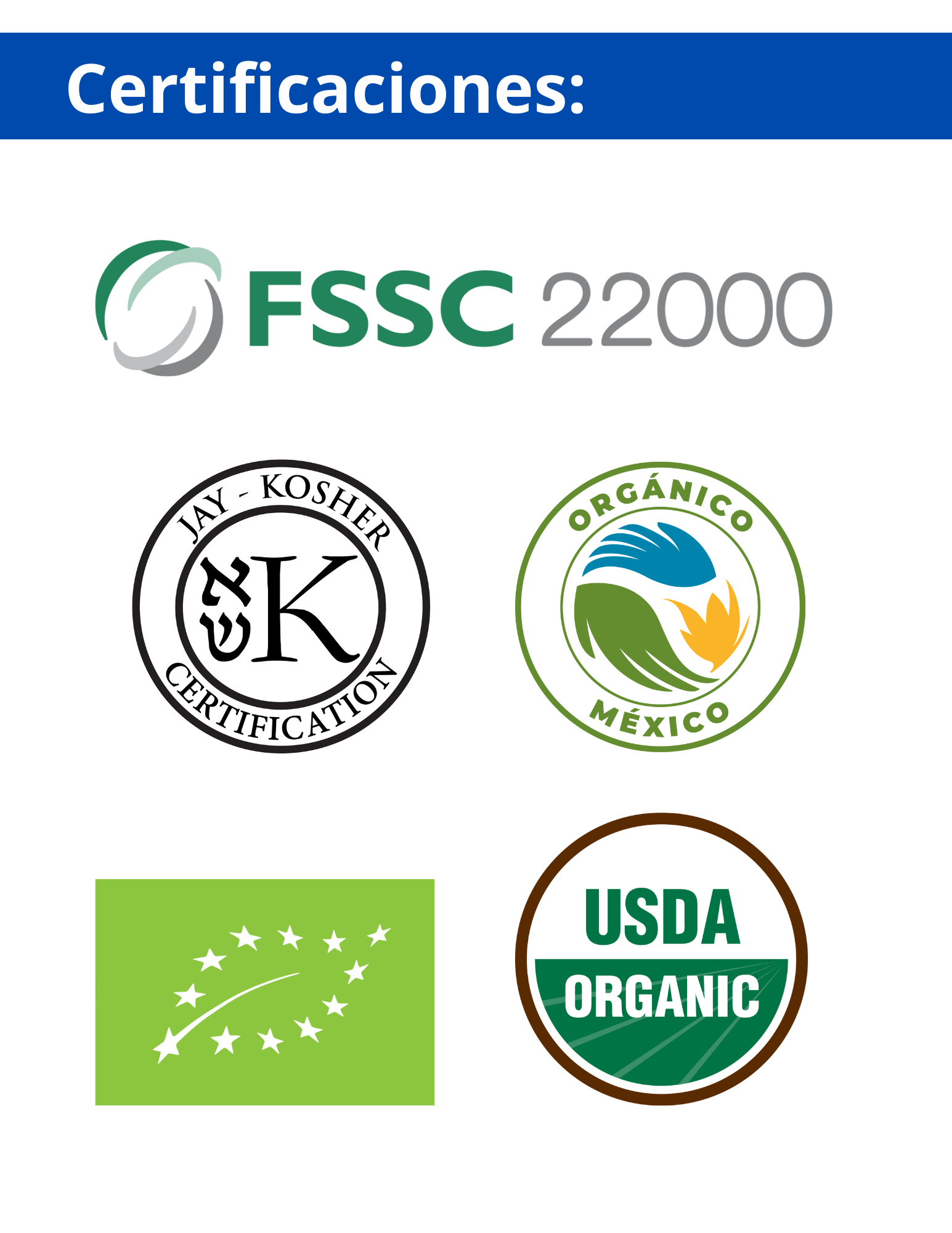 Todos nuestros procesos siguen controles estrictos de Buenas prácticas de manufactura, asegurando ofrecer productos inocuos. Nuestro sistema de calidad, basado en estándares internacionales, asegura cumplir con los requisitos del producto asegurando lograr su satisfacción en cada oportunidad.
